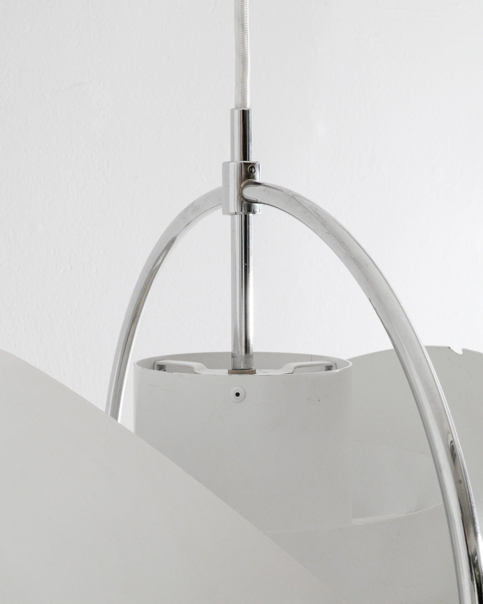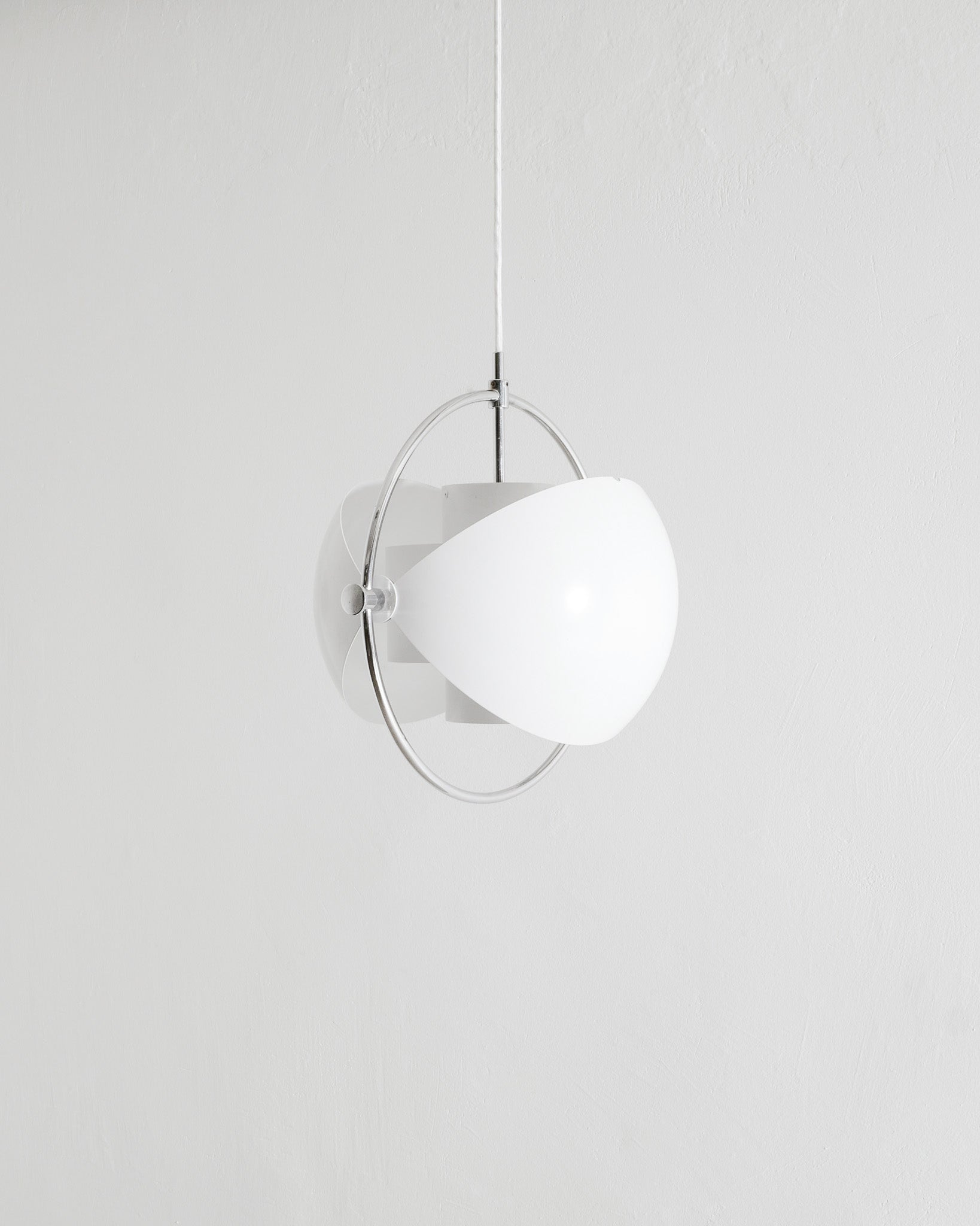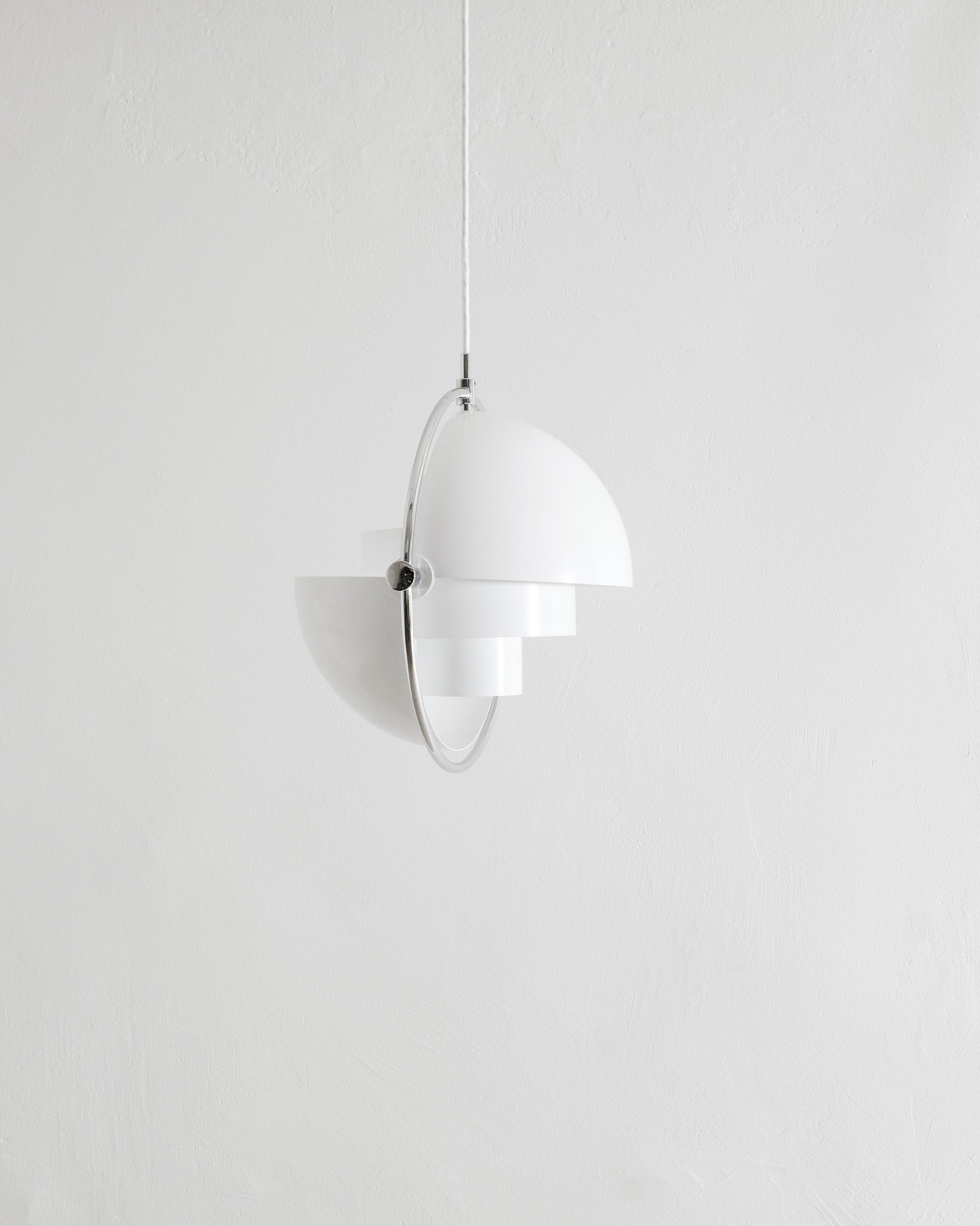 - A rare, early and original Danish mid century "Multi Lite" adjustable ceiling lamp pendant in white lacquered metal and chrome by Louis Weisdorf produced by Lyfa in Denmark, 1960s