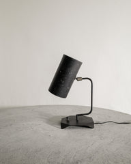 - Rare mid century "Tuyaux" desk table lamp in black lacquered metal and patinated brass with an adjustable shade by Serge Mouille & Isamu Noguchi for Steph Simon Paris in France, 1959